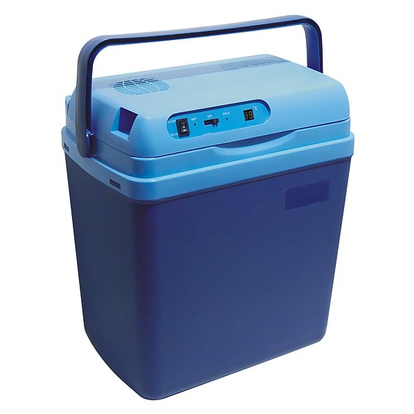 Zástrčka do zásuvky automobilového zapalovače 12V + zástrčka do sítě 220V. Chladící box ukazuje na displeji teplotu uvnitř boxu. Teplota o 10-20°C nižší než okolní v závislosti na podmínkách prostředí.